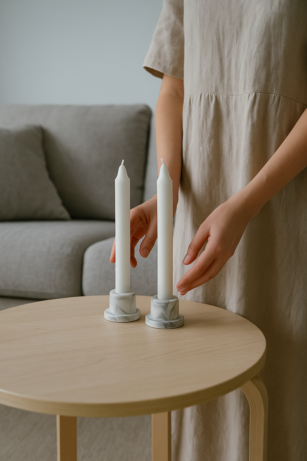 10 цен на Подсвечники гипсовые белый мрамор, 2 шт — ручная работа, декоративные, для свечей до 2 см