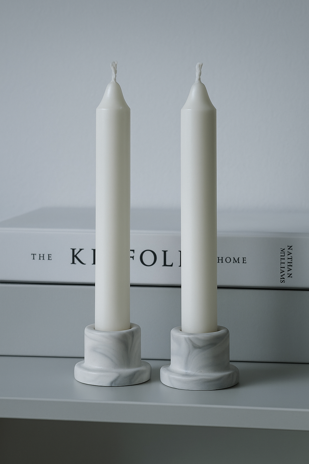 Подсвечники гипсовые белый мрамор, 2 шт — ручная работа, декоративные, для свечей до 2 см информация: