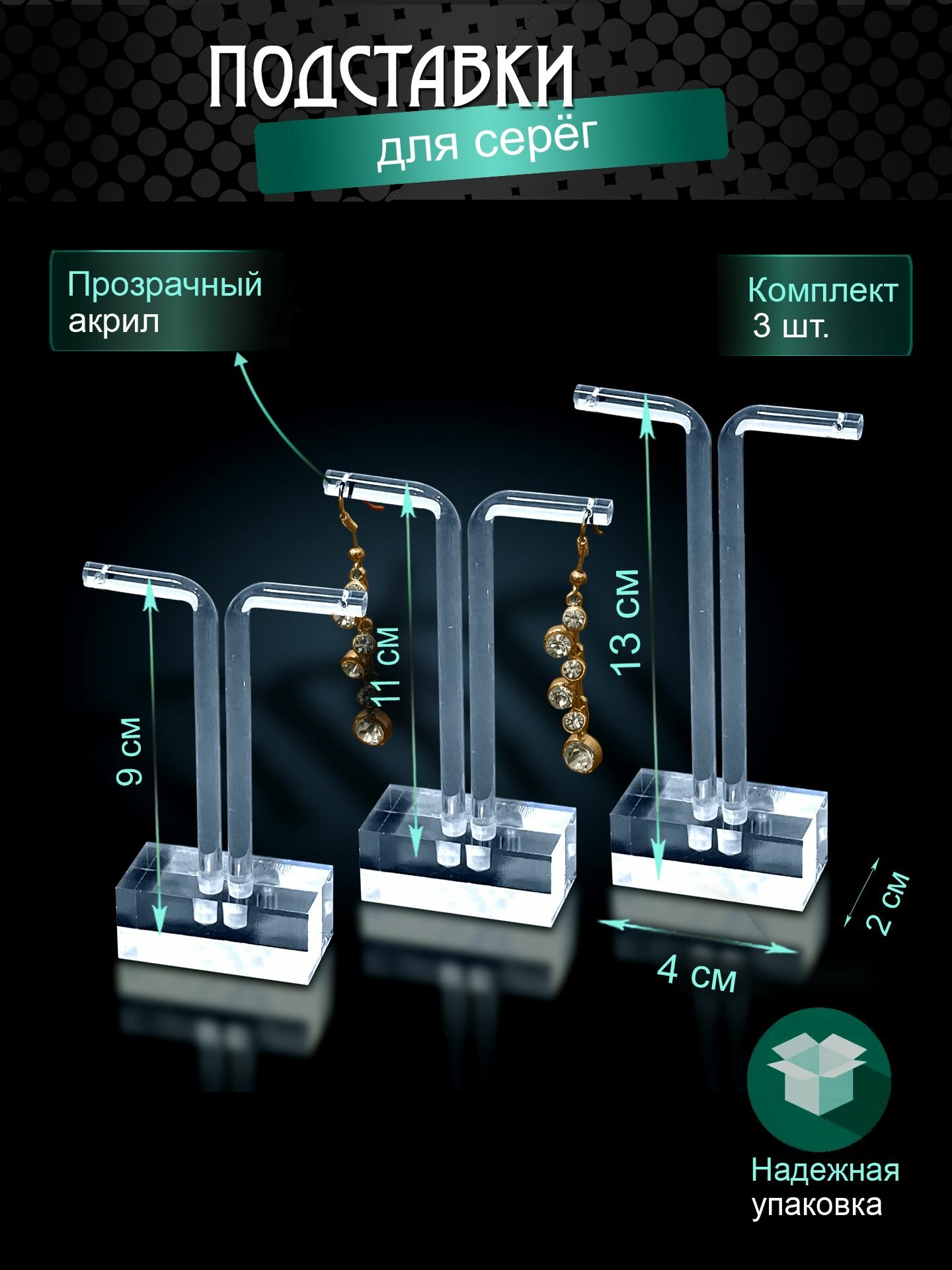 Подставка для серег Контур-Центр, 2х13х4 см, прозрачный информация:
