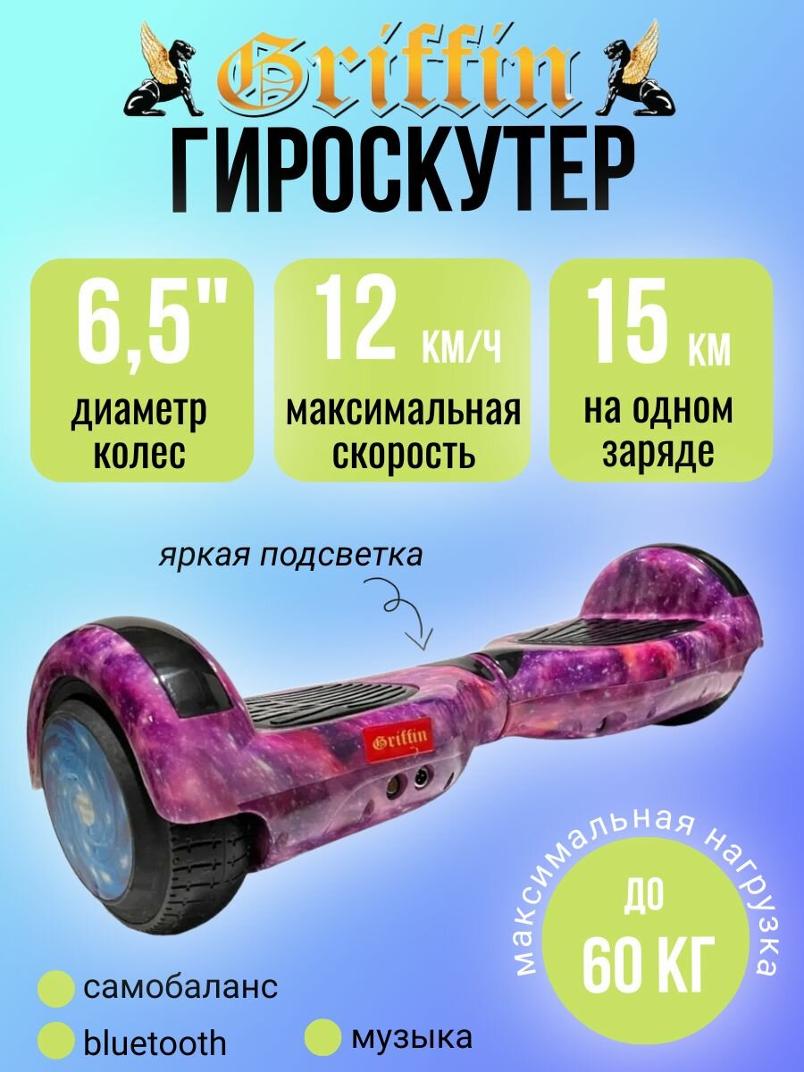 Характиристики этого товара не найдены!Отзывы на Гироскутер Griffin 6.5 для детей и подростков, фиолетовый космос
