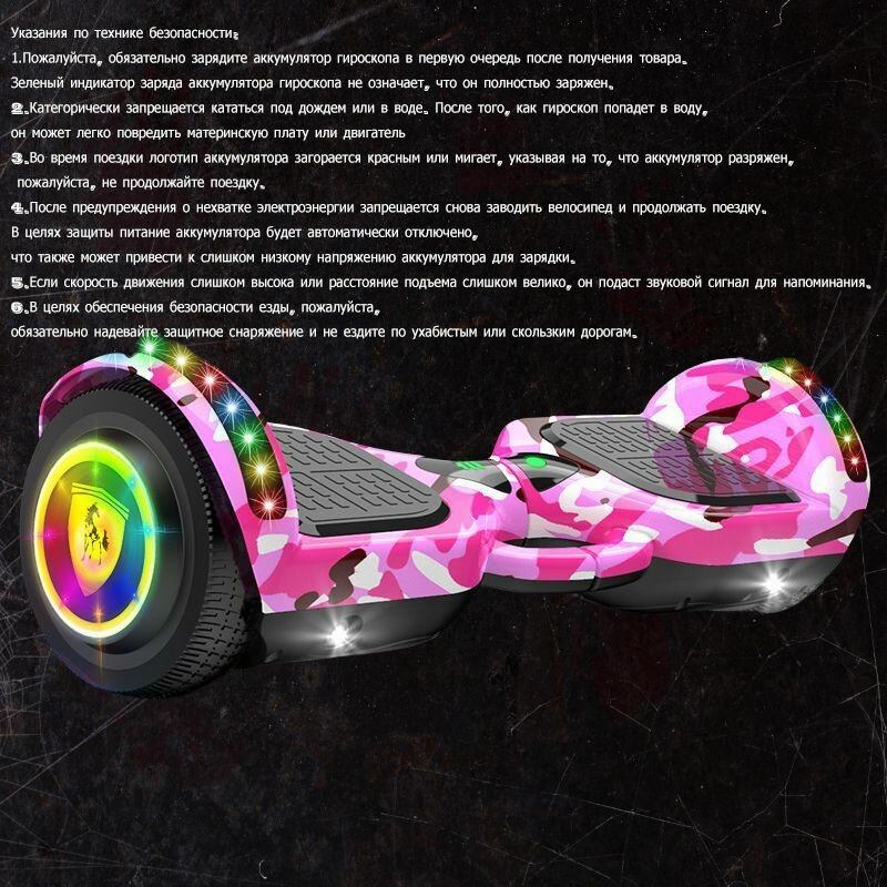 10 цен на Гироскутер, диаметр: 7 (дюймов), камуфляж розовый, Bluetooth музыка, светодиодная фара, съемные подлокотники, разноцветные светящиеся колеса