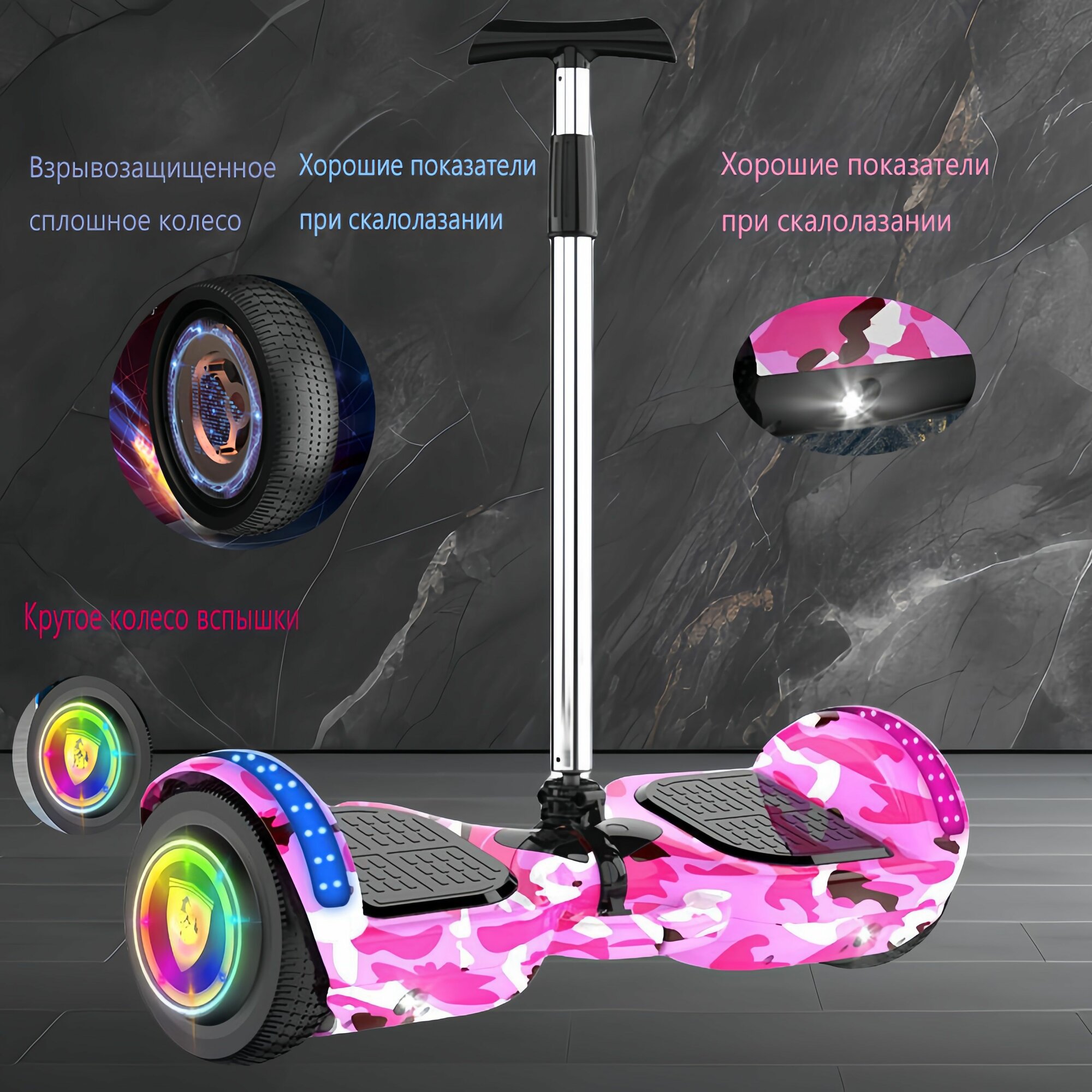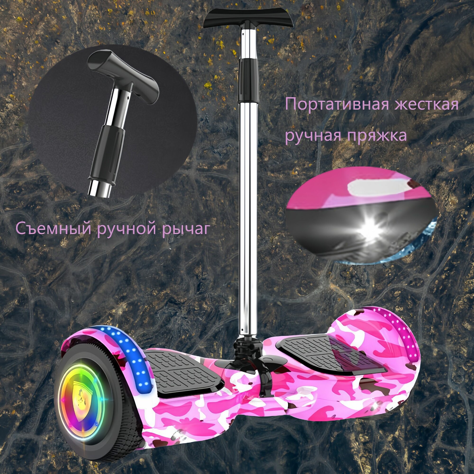 Отзывы на Гироскутер, диаметр: 7 (дюймы), Камуфляжно-розовый, Съемные подлокотники, Красочное светящееся колесо