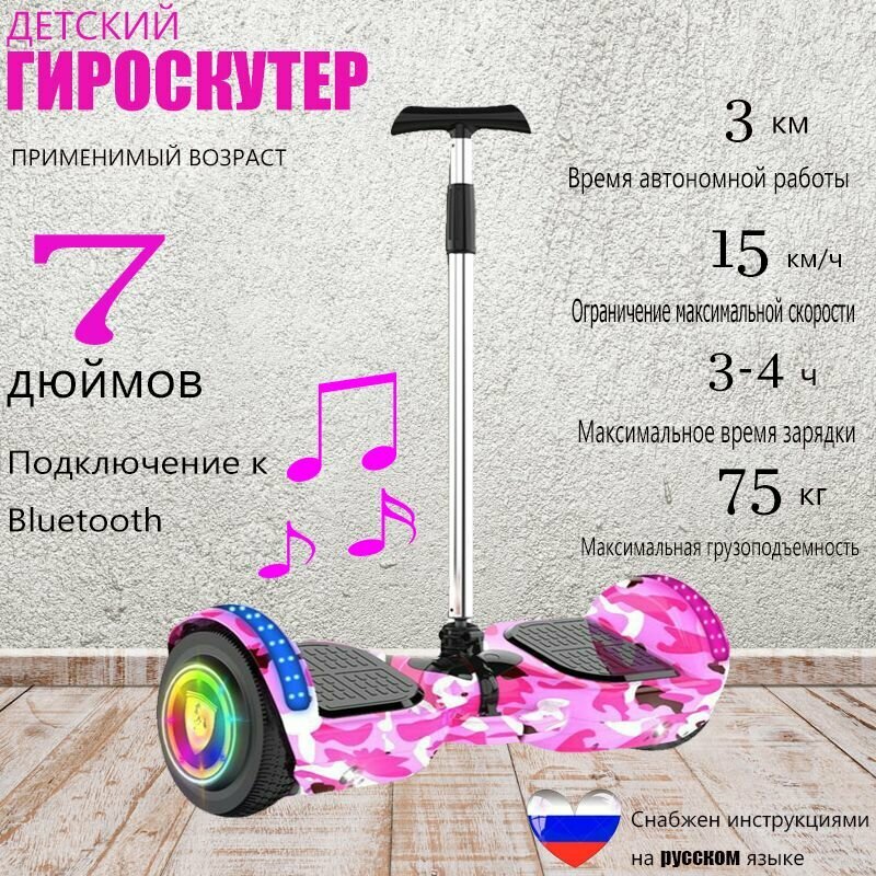10 цен на Гироскутер, розовый, Bluetooth, 7", мощность 500Вт, скорость 15км/ч, до 75кг