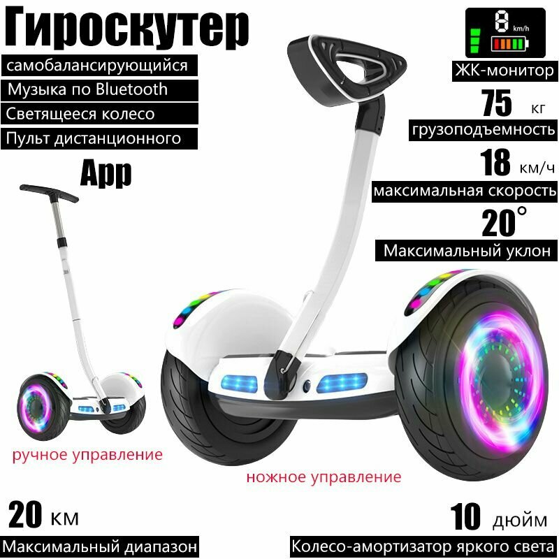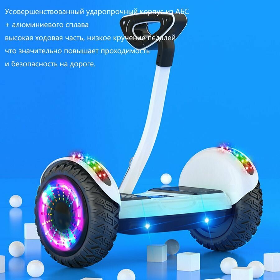 Гироскутер, Диаметр: 10 дюймов, белое, С аудиосистемой Bluetooth, внедорожными колесами информация: