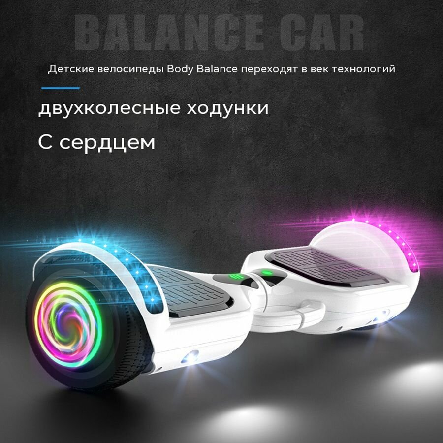 Гироскутер, диаметр: 8 (дюймы), Классический белый цвет, Съемные подлокотники, Красочное светящееся колесо информация: