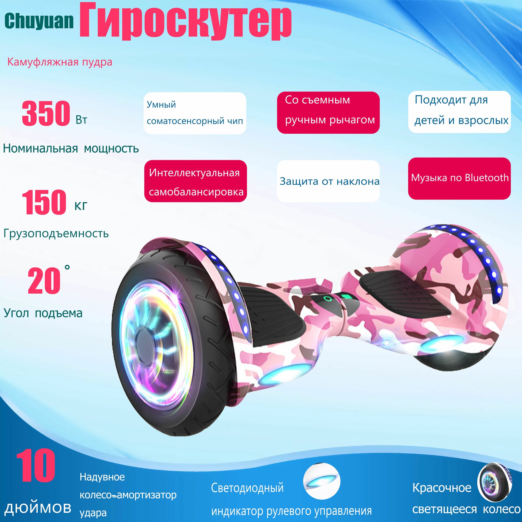 Отзывы на Гироскутер, Диаметр: 10 дюймов, Защита от опрокидывания, Со светодиодной подсветкой