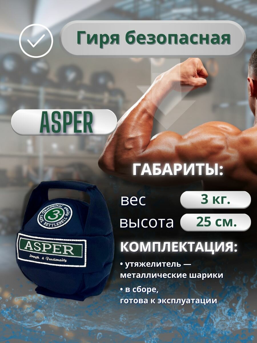 Гиря засыпная ASPER 3 кг, безопасная, наполнитель металлические шарики, спорт инвентарь, текстильная с двумя ручками информация: