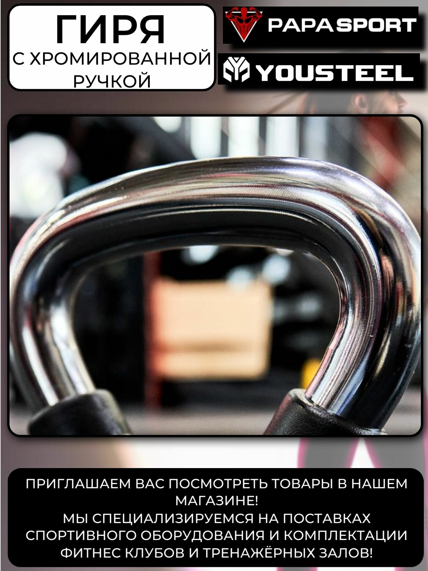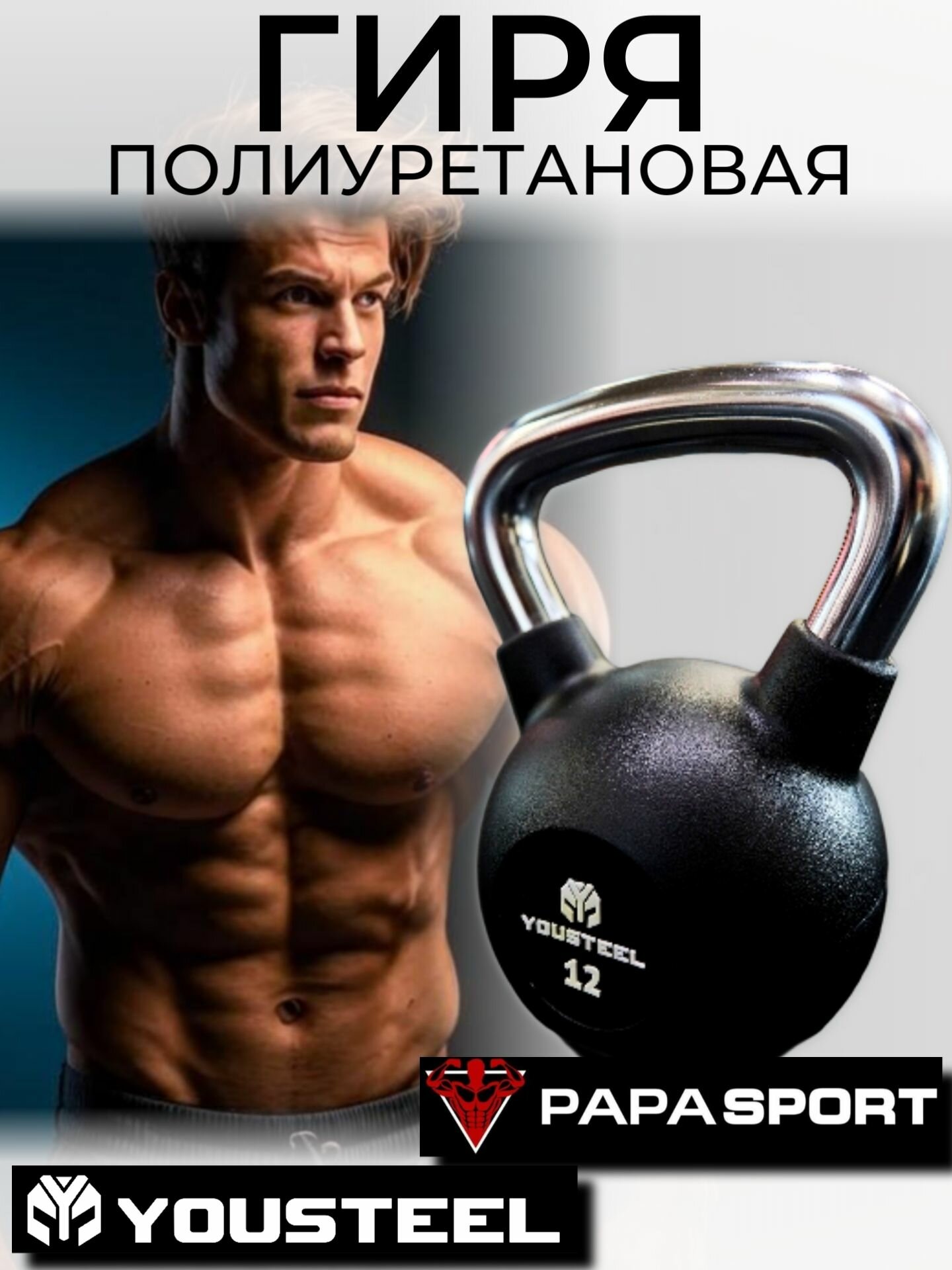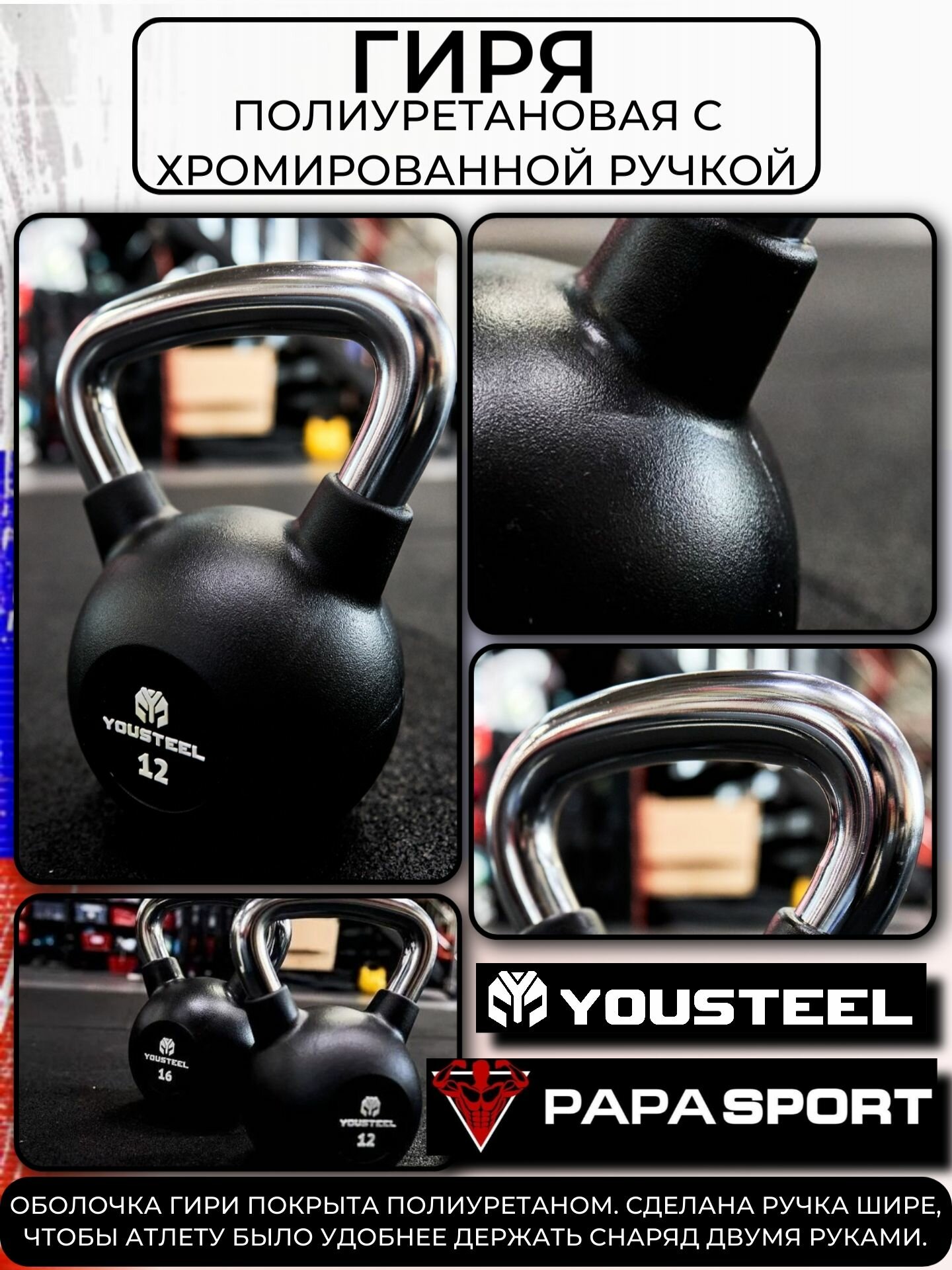 Гиря полиуретановая с хромированной рукоятью для кроссфита YOUSTEEL юстил 12 кг, полиуретановое покрытие, чугунное ядро информация: