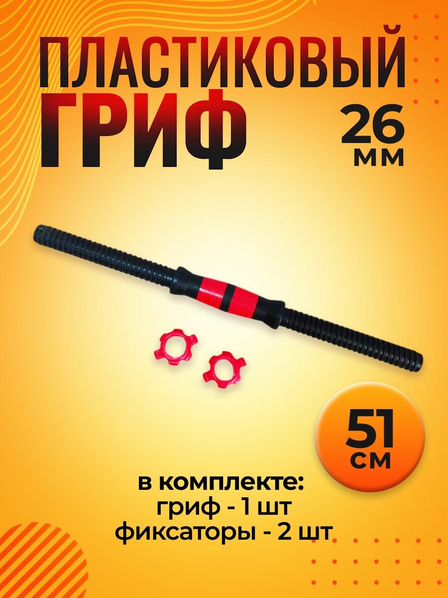 Гриф для гантелей 51 см 1 штука, пластик, стальная труба, d 26мм, гайки фиксаторы информация: