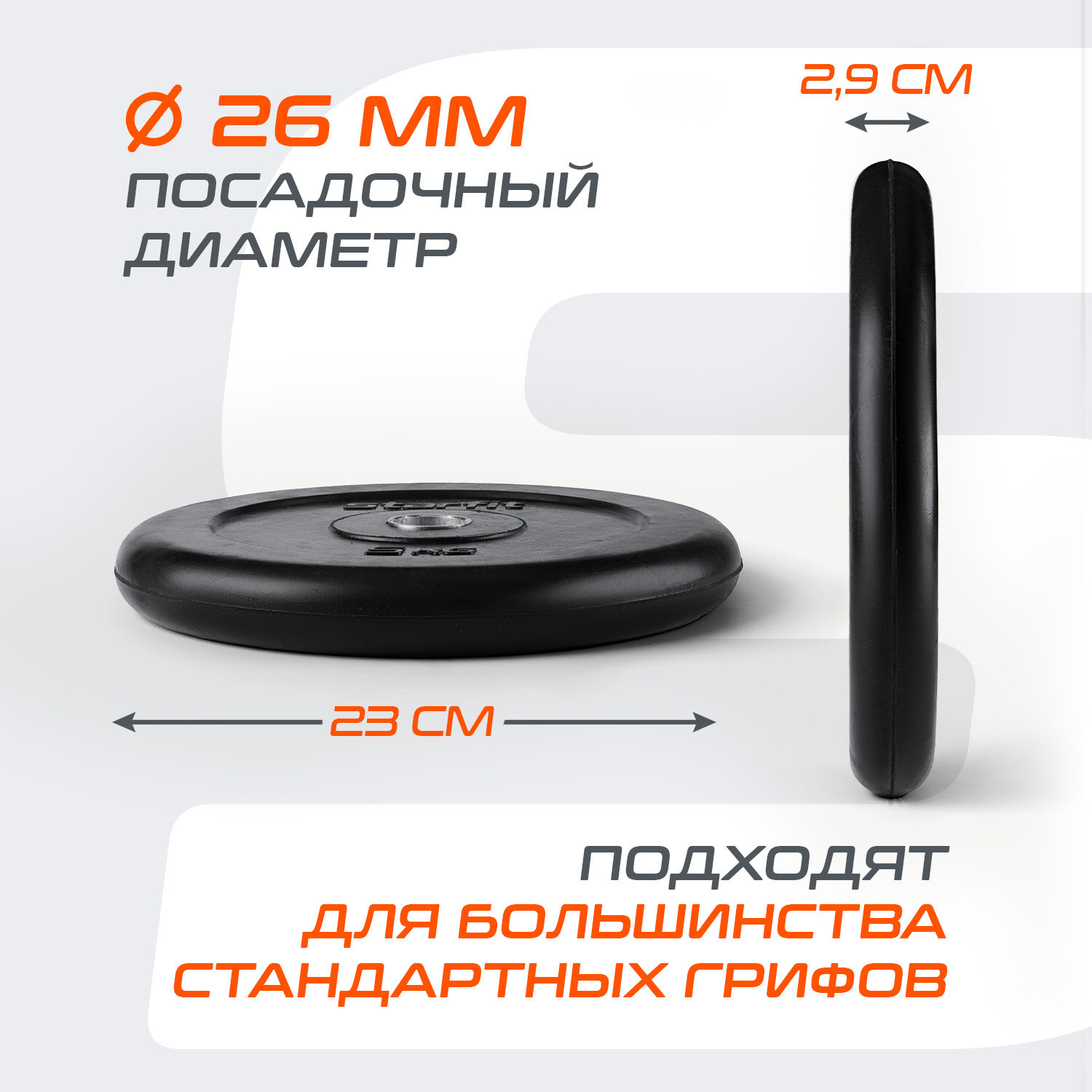 Блины для штанги обрезиненные STARFIT, вес 5 кг, набор 2 шт, d=26 мм информация: