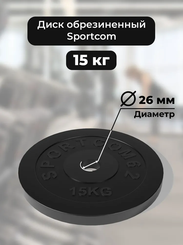 Диск Sportcom обрезиненный 26мм 15 кг, черный информация: