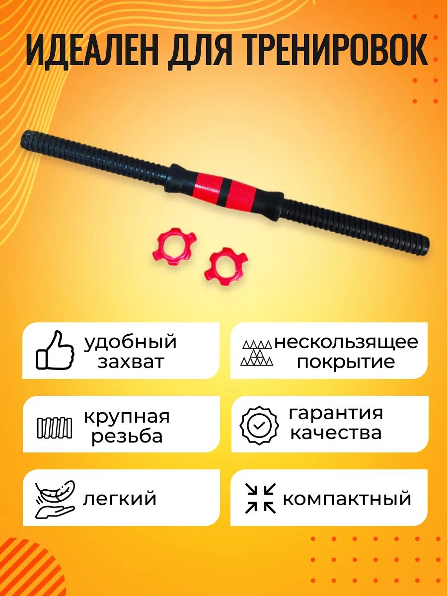 10 цен на Гриф гантельный 47 см, D 26, 2 гайки фиксатора. Пластик. Эргономичный хват.