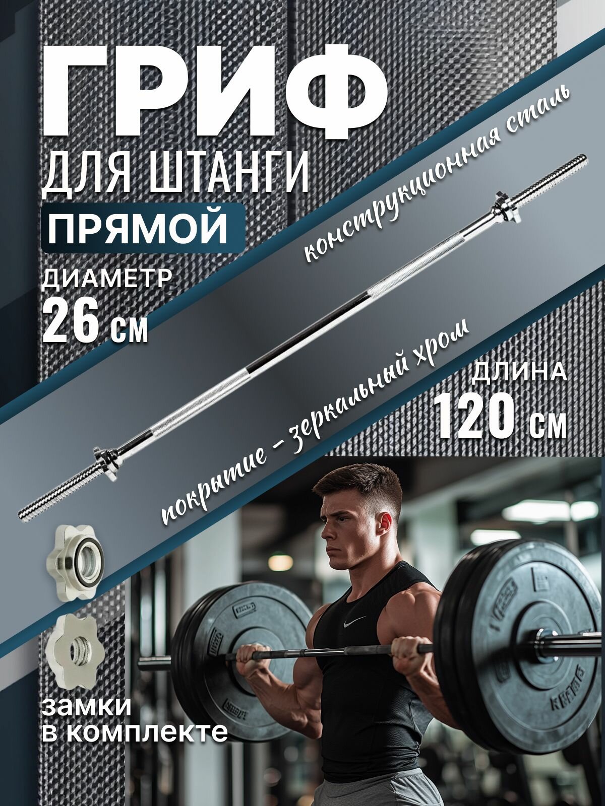 Отзывы на Гриф стальной для штанги 120 см, стальной, D 26мм, с гайками фиксаторами