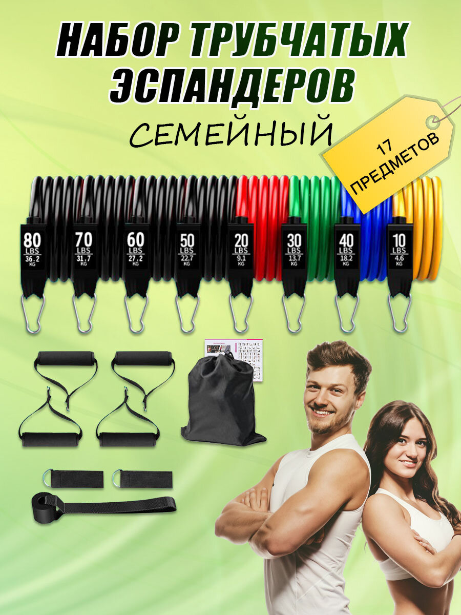 Набор трубчатых эспандеров с ручками для фитнеса "Fit-Story" Семейный информация: