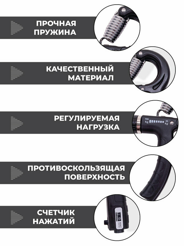 10 цен на Эспандер кистевой, пружинный, с счетчиком и регулировкой нагрузки (до 60 кг)