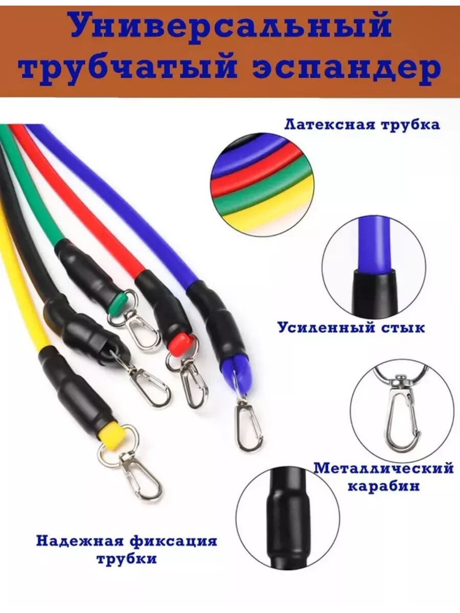 Эспандер трубчатый эластичный набор 5 штук разного веса с аксессуарами информация: