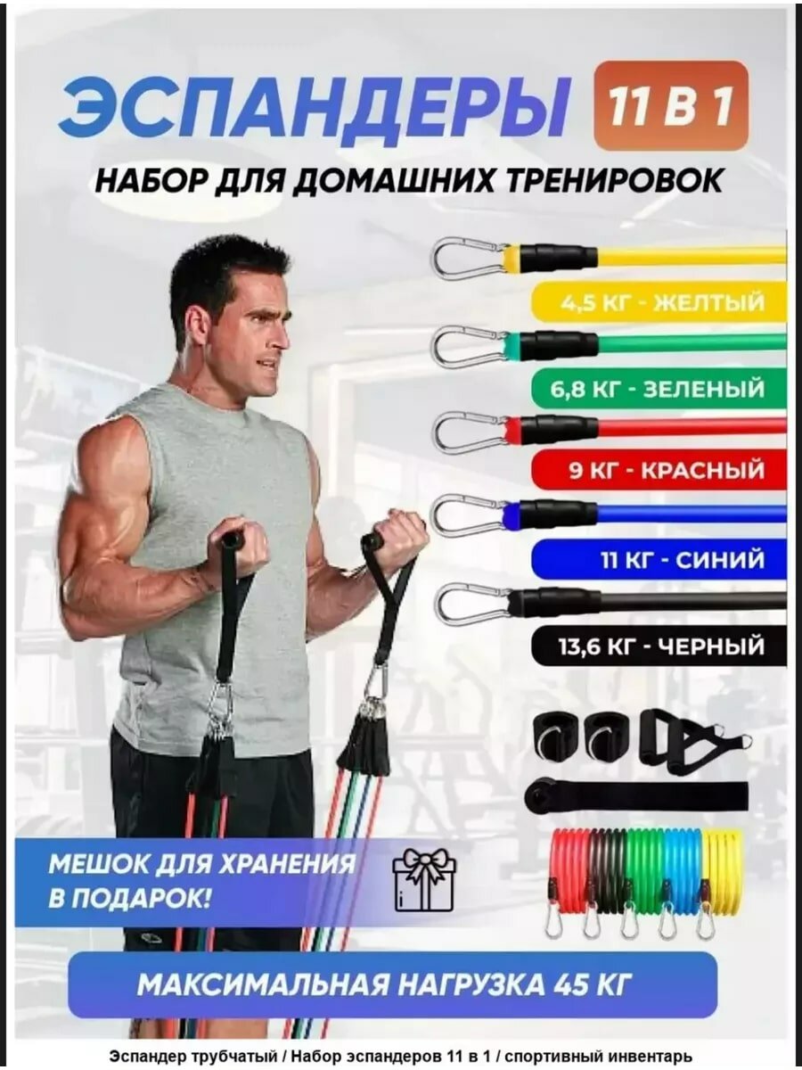 Мы выбрали 10 лучших цен на Эспандер трубчатый эластичный набор 5 штук разного веса с аксессуарами. Перед тем как купить Эспандер трубчатый эластичный набор 5 штук разного веса с аксессуарами посмотрите найденные предложения из Яндекс Маркета и других сайтов на основе XML фидов.