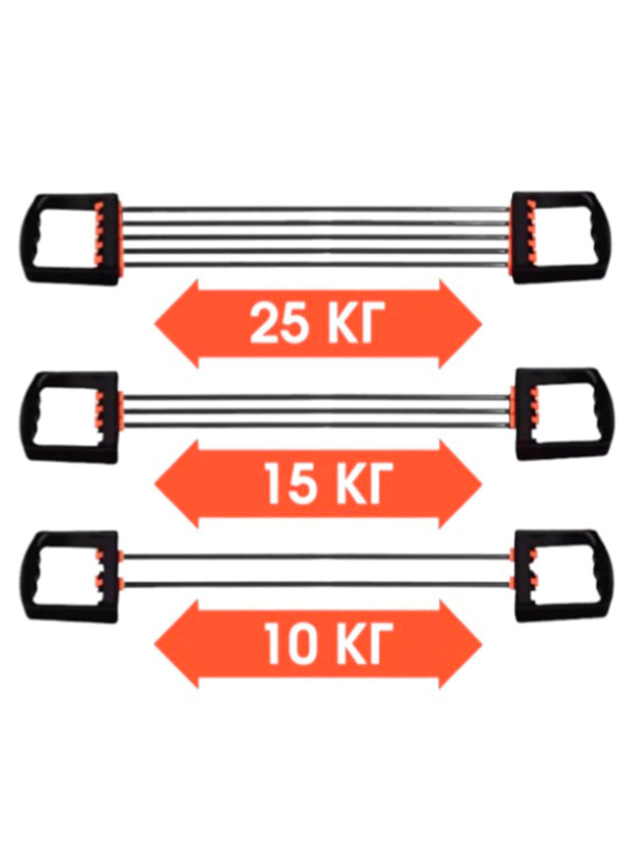 10 цен на Эспандер плечевой, 5 жгутов, максимальная нагрузка 25кг, длина 64см, вес 370г