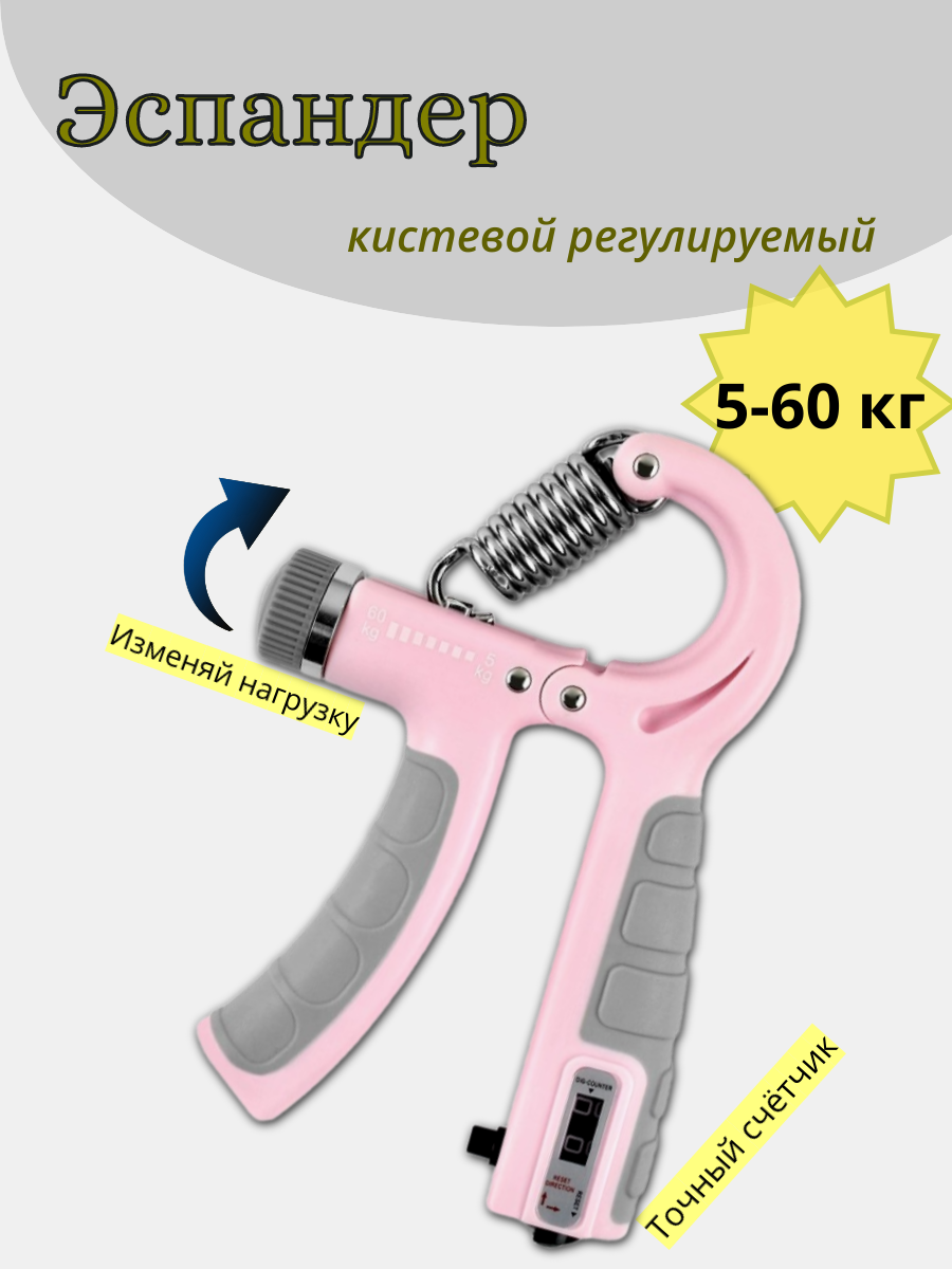 10 цен на Эспандер кистевой, для рук, с усиленной, пружиной, регулируемой нагрузкой до 60 кг, розовый, со счётчиком.