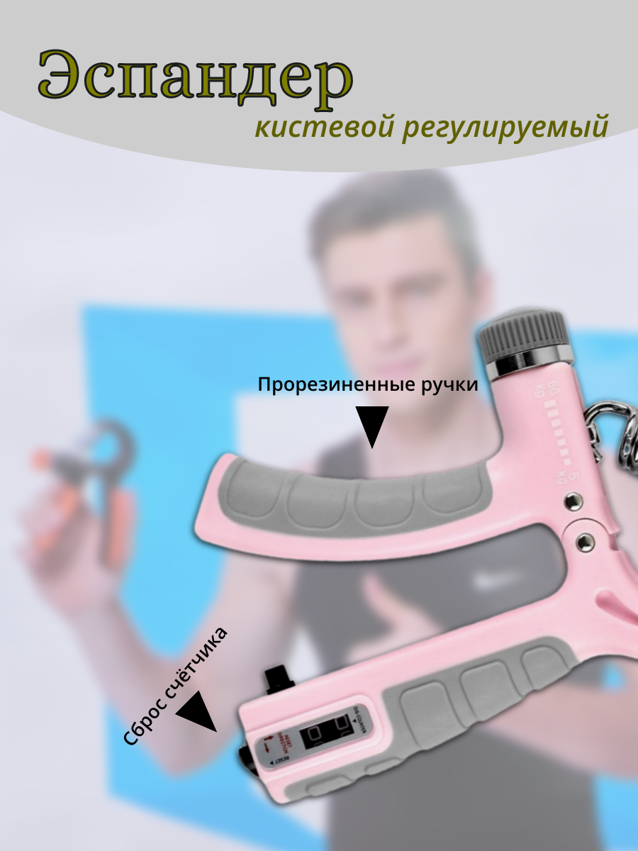 Эспандер кистевой, для рук, с усиленной, пружиной, регулируемой нагрузкой до 60 кг, розовый, со счётчиком. информация: