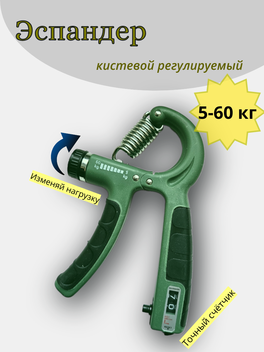 10 цен на Эспандер кистевой, для рук, с усиленной, пружиной, регулируемой нагрузкой до 60 кг, зелёный, со счётчиком.