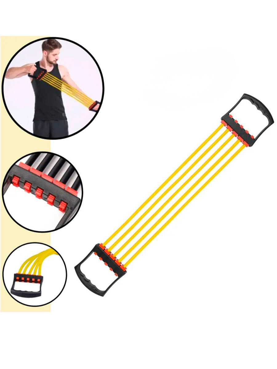 10 цен на Эспандер 5 жгутов, плечевой, грудной, латексный, желтый, 64 см