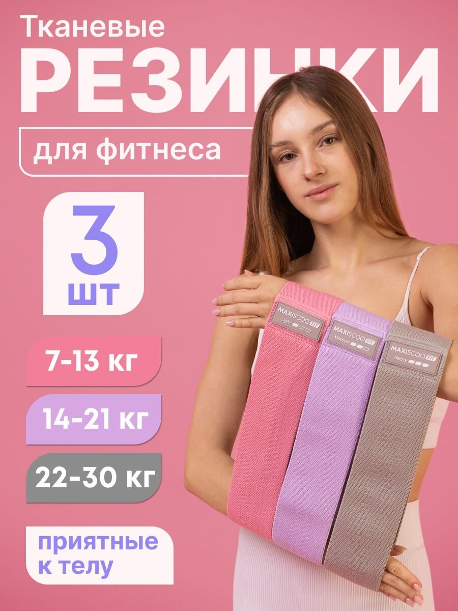 Отзывы на Набор тканевых фитнес резинок с мешком для хранения MAXISCOO FIT, 3 шт