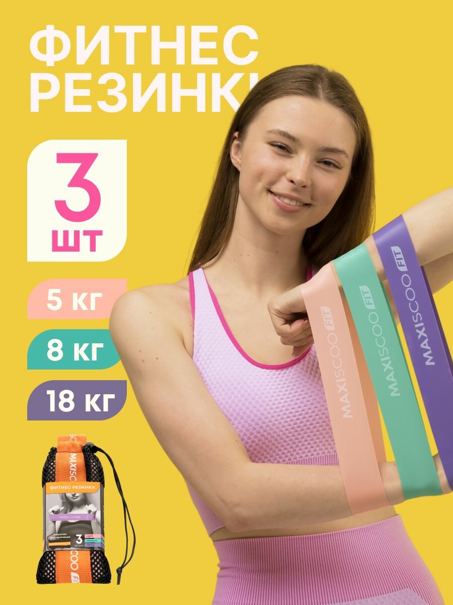 10 цен на Набор фитнес резинок с мешком для хранения MAXISCOO FIT, 3 шт