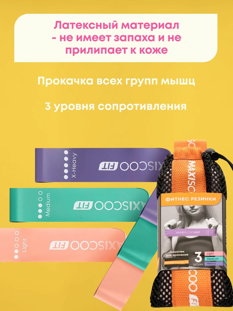 Набор фитнес резинок с мешком для хранения MAXISCOO FIT, 3 шт информация: