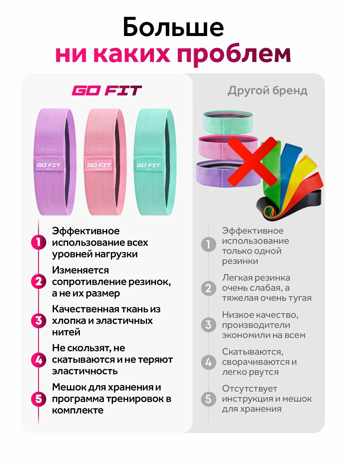 10 цен на Тканевые фитнес-резинки GO FIT Premium, для йоги, пилатеса и фитнеса, с мешочком и программой тренировок, набор 3 шт