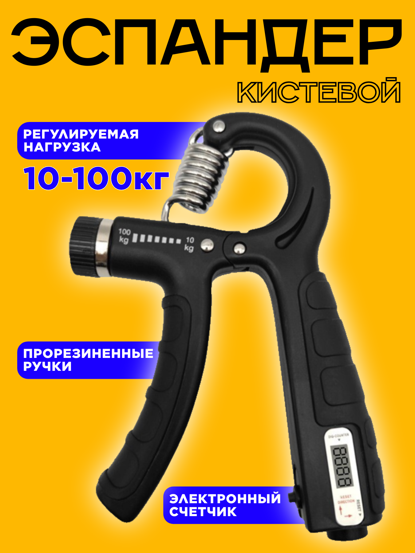10 цен на Эспандер кистевой с регулировкой нагрузки 10 - 100 кг, экспандер для кисти, со счетчиком, черный