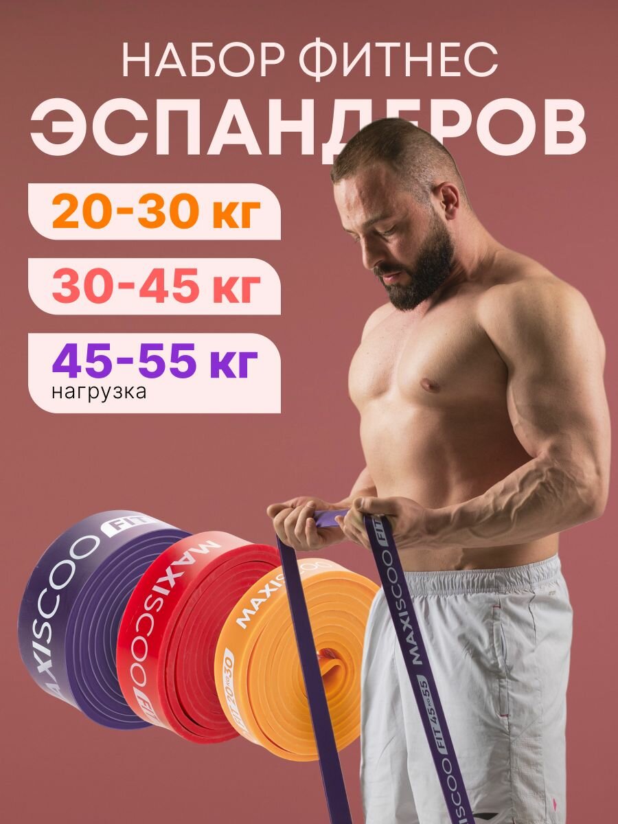 Фитнес эспандеры MAXISCOO FIT, 3 шт (30-45 кг, 45-55 кг, 55-65 кг) 3 300 ₽