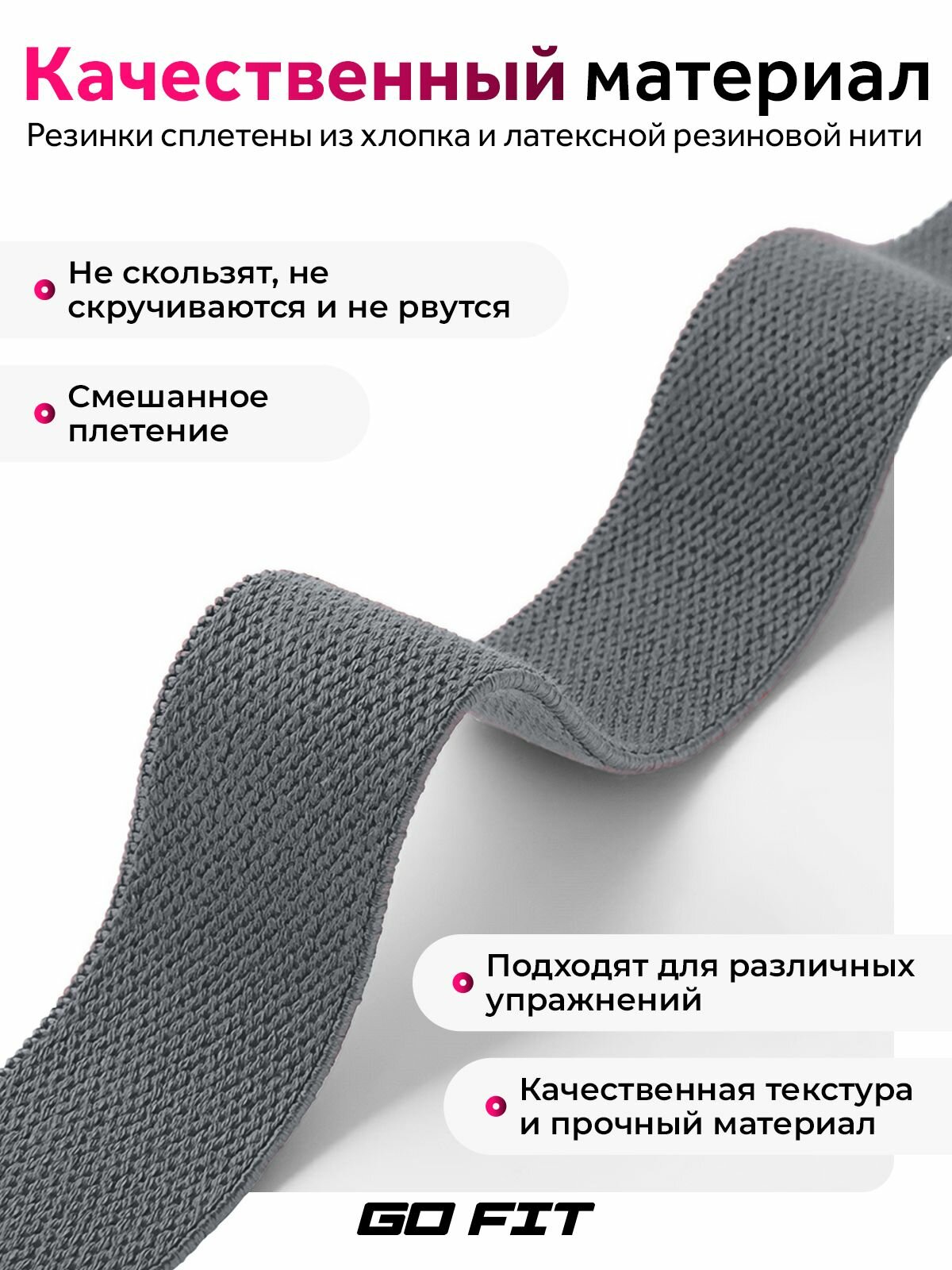 Тканевые фитнес-резинки GO FIT Long Loops, для фитнеса, йоги, мешочек для хранения, программа тренировок, 3 штуки, Grey информация: