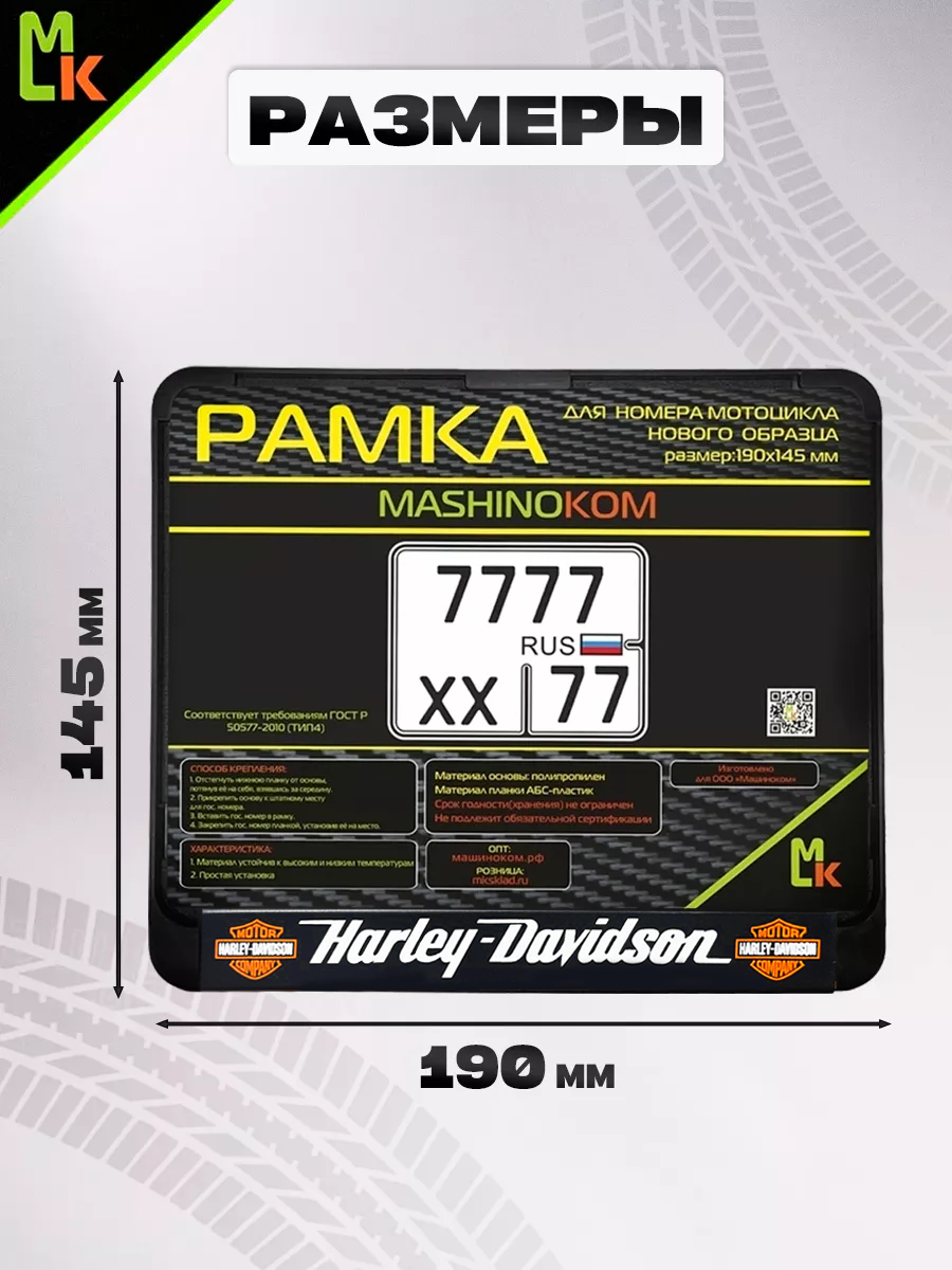 10 цен на Рамка MkAuto для номера мотоцикла " Harley-Davidson" Размер: 190*145мм