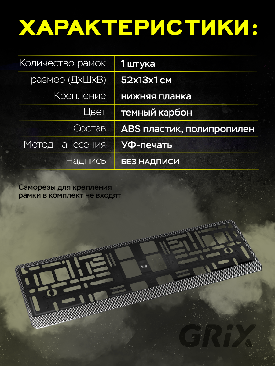 Grix Рамки автомобильные для госномеров "карбон темный" 1 шт. информация: