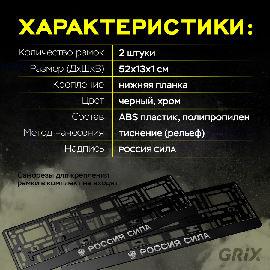 Grix Рамки автомобильные для госномеров с надписью "россия сила" Набор - 2 шт. информация:
