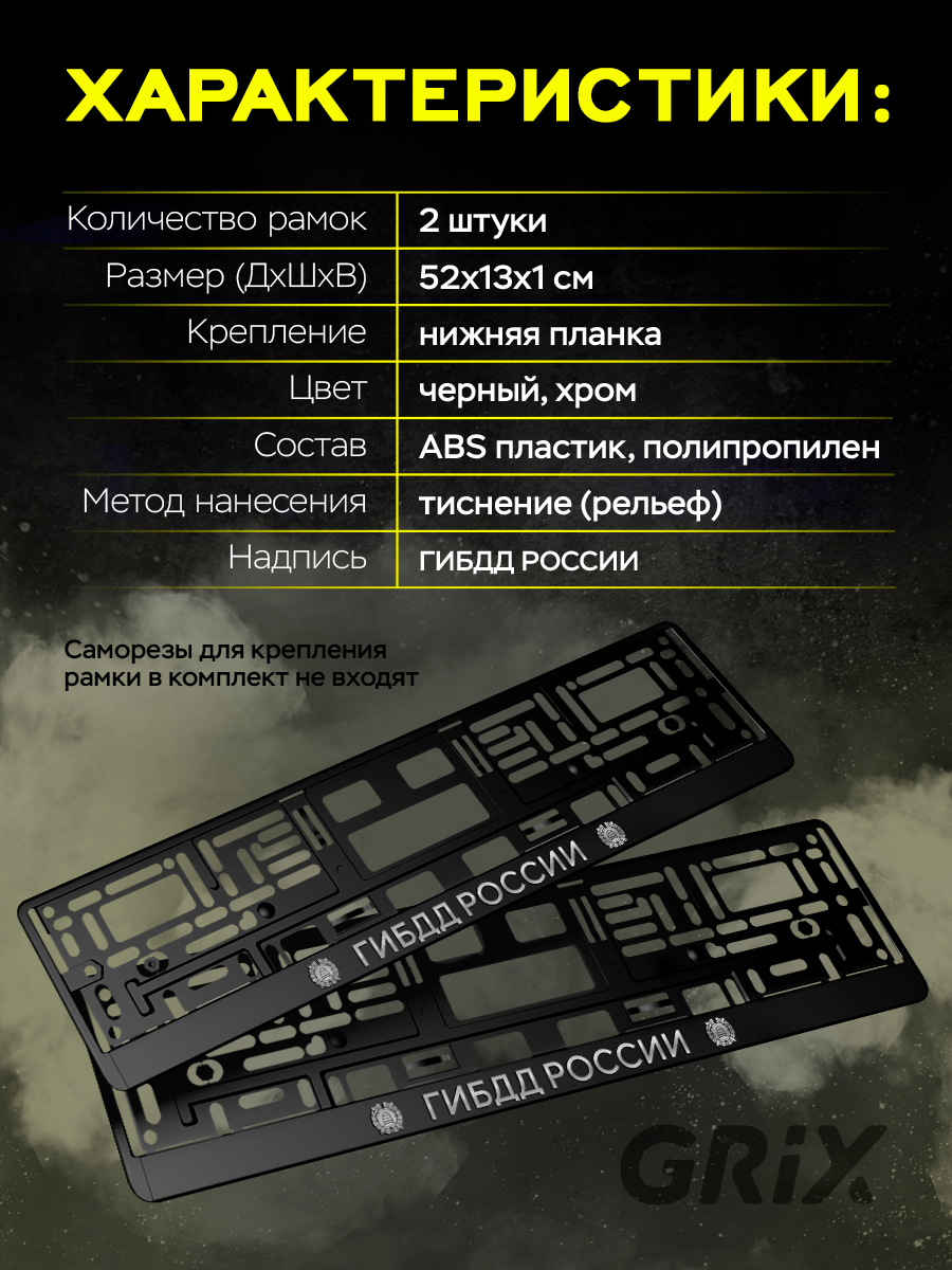 Grix Рамки автомобильные для госномеров с надписью "ГИБДД" Набор - 2 шт. информация: