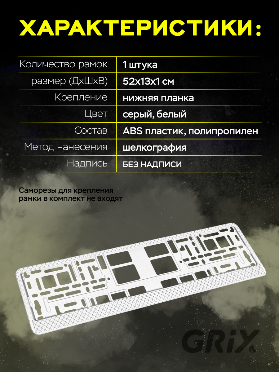 Grix Рамки автомобильные для госномеров "рабица (БЕЛАЯ)" 1 шт. информация: