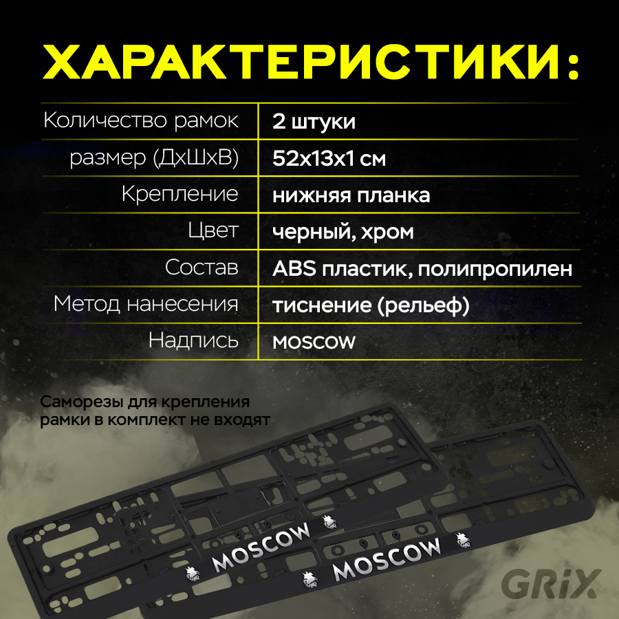 Grix Рамки автомобильные для госномеров с надписью "MOSCOW" Набор - 2 шт. информация: