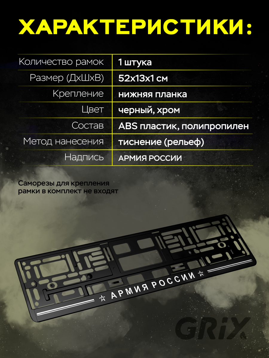 10 цен на Grix Рамки автомобильные для госномеров с надписью "армия россии" 1 шт.