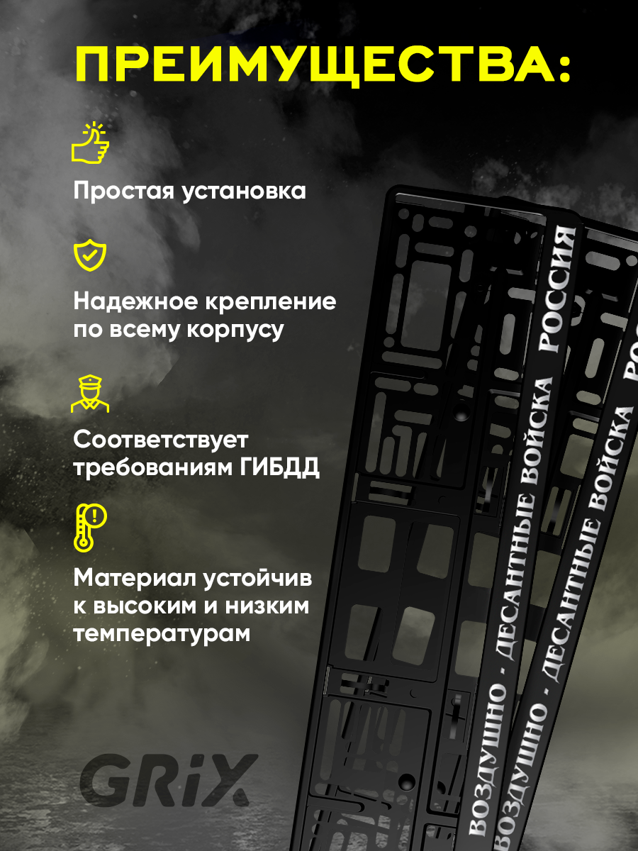 Grix Рамки автомобильные для госномеров с надписью "ВДВ" Набор - 2 шт. информация: