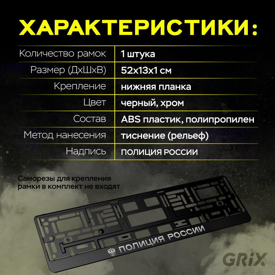 Grix Рамки автомобильные для госномеров с надписью "полиция россии" 1 шт. информация: