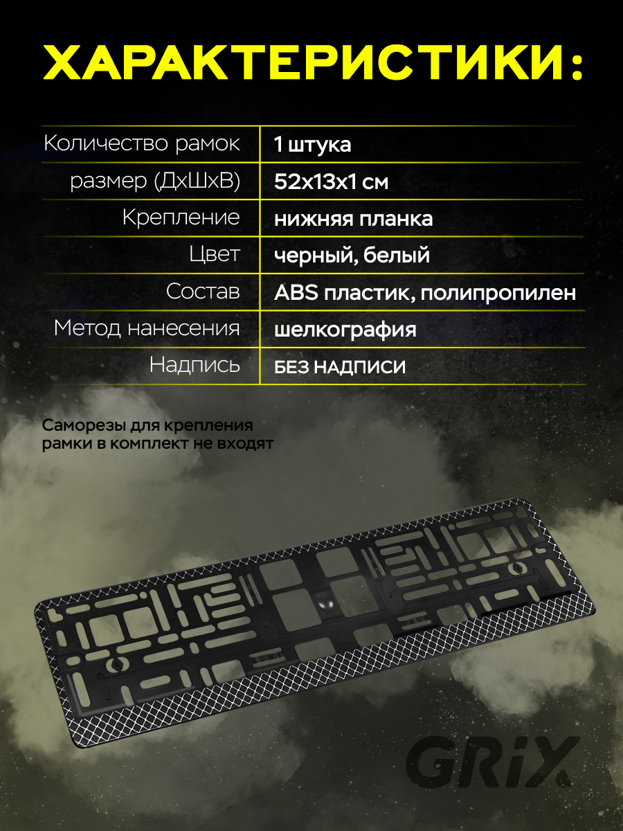 Grix Рамки автомобильные для госномеров "рабица (черная)" 1 шт. информация: