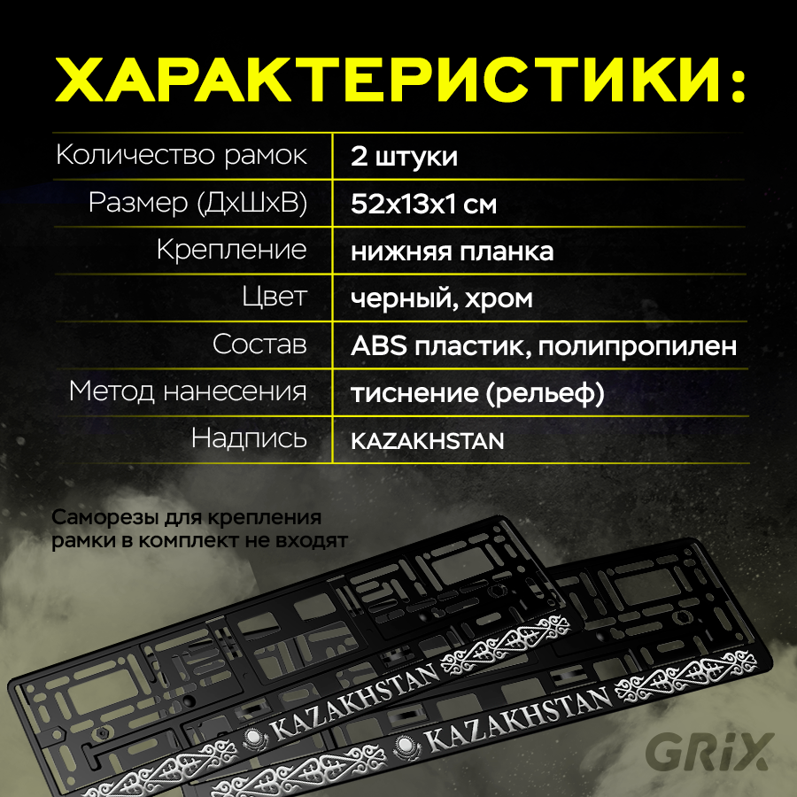 Grix Рамки автомобильные для госномеров с надписью "KAZAHSTAN" Набор - 2 шт. информация: