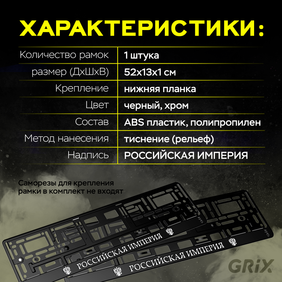 Grix Рамки автомобильные для госномеров с надписью "российская империя" 1 шт. информация: