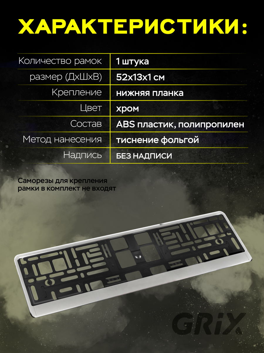 Grix Рамки автомобильные под номер цвет ХРОМ комплект 1 шт. информация: