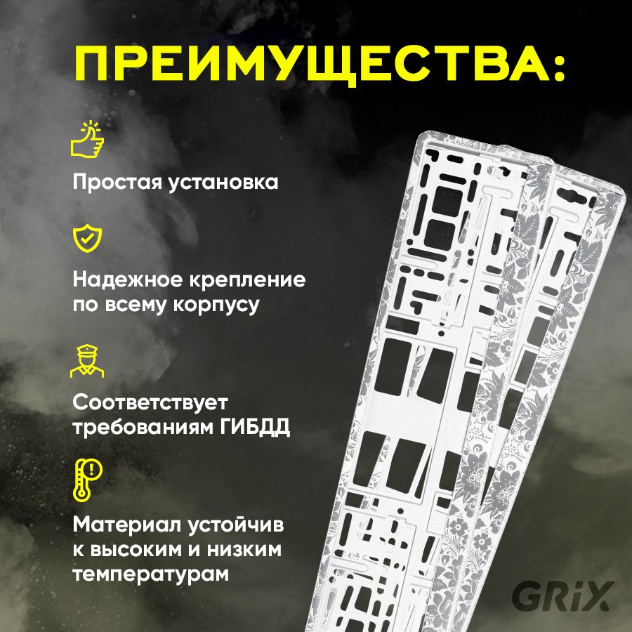 Отзывы на Grix Рамки автомобильные для госномеров "серебристая хохлома (БЕЛАЯ)" Набор - 2 шт.