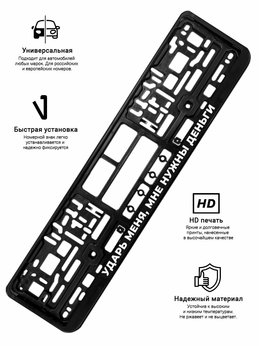 Рамка для номера автомобиля с надписью "Ударь меня, мне нужны деньги" черный информация: