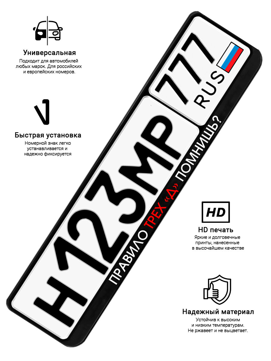 Отзывы на Рамка для номера автомобиля с надписью "Правило трех "Д" помнишь?" черный