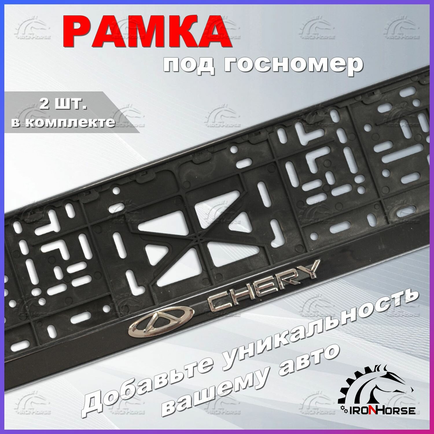 Рамка под номерной знак для автомобиля с логотипом Чери / Chery, 2 шт. информация: